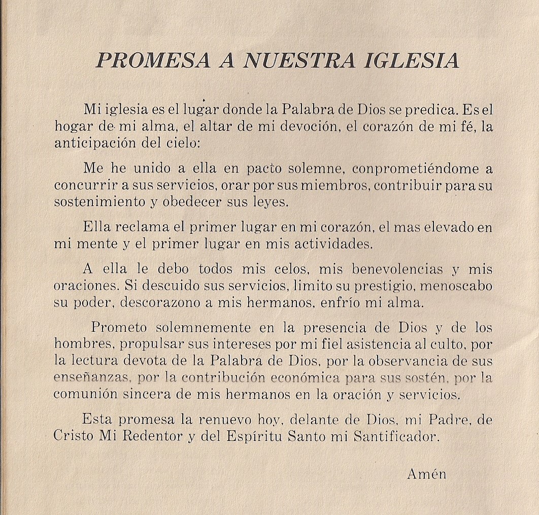 Que la crisis no nos destruya, sino que nos haga crecer y ser mejores cristianos, mejores seres humanos, una mejor iglesia. Hoy quisiera invitarles a hacer esta promesa que fuera parte del Anuario de los 50 años de esta amada iglesia: